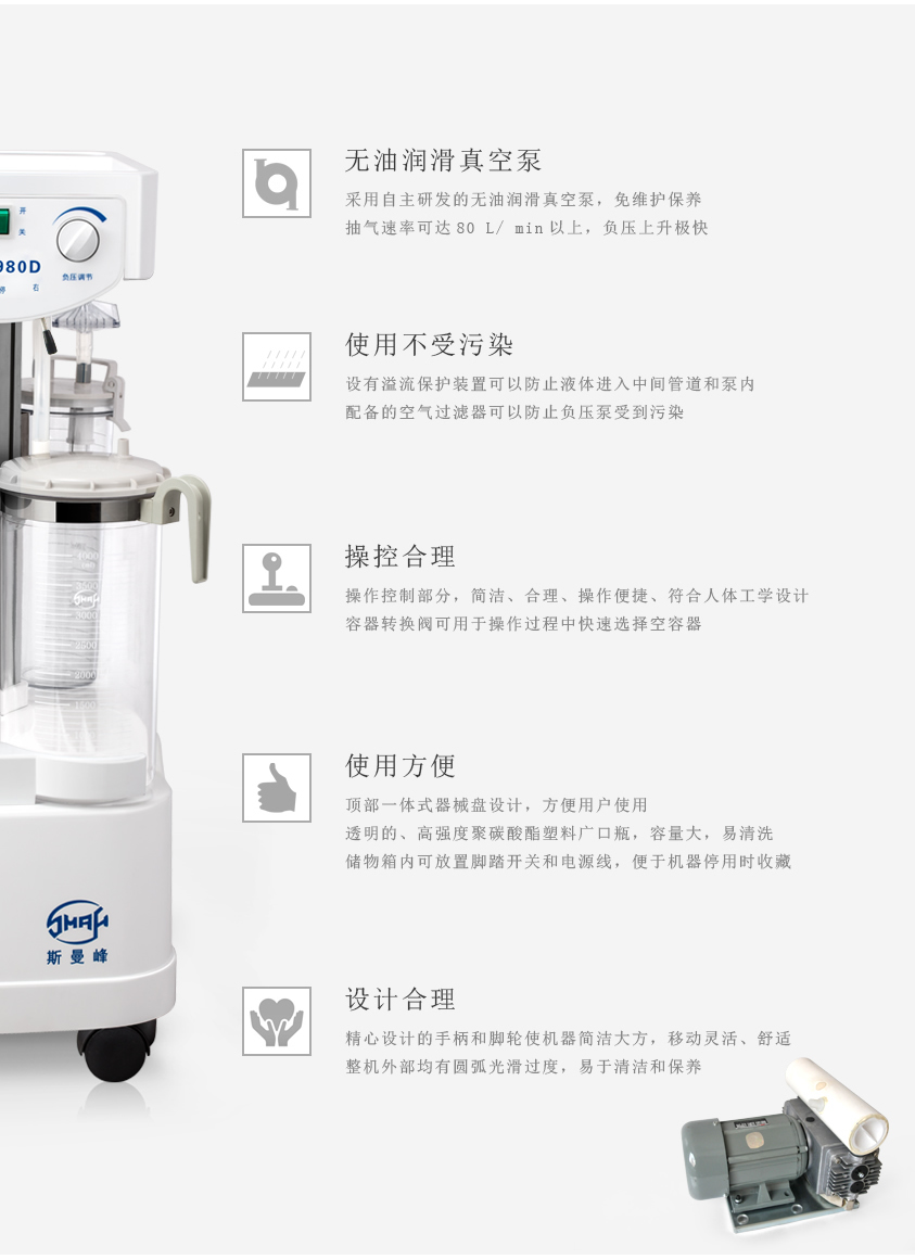 上海斯曼峰 电动吸引器 YX980D 性能特点: