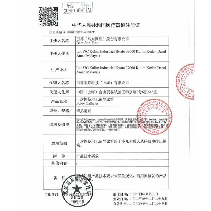 巴德一次性使用无菌双腔导尿管 产品介绍