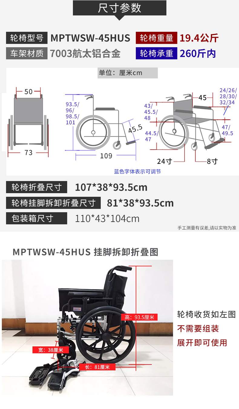 MIKI三贵 手动轮椅车MPTWSW-45HUS 产品参数: