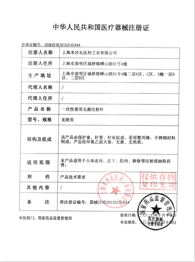 米沙瓦产品列表 类别 产品名称 型号 纸塑包装数 (支/箱) 注射器 一次性使用无菌注射器(带针) 1ml(0.4x13) 2000 一次性使用无菌注射器(带针) 1ml(0.45x16) 2000 一次性使用无菌注射器(带针) 2ml(0.5x25) 1600 一次性使用无菌注射器(带针) 2ml(0.5x38) 1600 一次性使用无菌注射器(带针) 2ml(0.6x32) 1600 一次性使用无菌注射器(带针) 5ml(0.7x32) 1200 一次性使用无菌注射器(带针) 10ml(0.7x32) 800 一次性使用无菌注射器(带针) 20ml(1.2x38) 500 一次性使用无菌注射器(带针) 60ml(1.2x38) 200 注射针 一次性使用注射针(单支包装) 0.6X25 5000 一次性使用注射针(单支包装) 0.6X32 5000 一次性使用注射针(单支包装) 0.7x32 5000 一次性使用注射针(单支包装) 0.8X25 5000 一次性使用注射针(单支包装) 0.8X32 5000 一次性使用注射针(单支包装) 0.8x38 5000 一次性使用注射针(单支包装) 0.55x25 5000 一次性使用注射针(单支包装) 0.9x38 5000 一次性使用注射针(单支包装) 0.4x13 5000 一次性使用注射针(单支包装) 0.45x16 5000 一次性使用注射针(单支包装) 0.5x16 5000 一次性使用注射针(单支包装) 0.5x25 5000 一次性使用注射针(单支包装) 0.5x38 5000 一次性使用注射针(单支包装) 1.1x38 5000 一次性使用注射针(单支包装) 1.2x25 5000 一次性使用注射针(单支包装) 1.2x38 5000 一次性使用注射针(单支包装) 0.5x38 5000 输液器 一次性使用输液器 IS-G4 500 一次性使用输液器 IS-G4-1 500 一次性使用输液器 IS-G4-2 500 一次性使用输液器 IS-G4-3 500 一次性使用输液器 IS-G5(0.6x25) 500 一次性使用输液器 IS-G5-1 500 一次性使用输液器 IS-G5-2 500 一次性使用输液器 IS-G5-3 500 混药器 一次性使用无菌双联混药包 2ML 50 棱牌(米沙瓦) 2ml 一次性使用无菌双联混药器