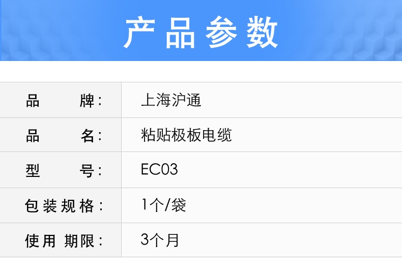 上海沪通 粘贴极板电缆 EC03扁头 适用范围: