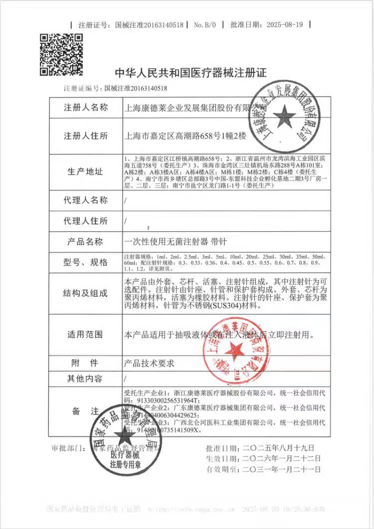 康德莱 一次性使用无菌注射器 1ml 产品特点: