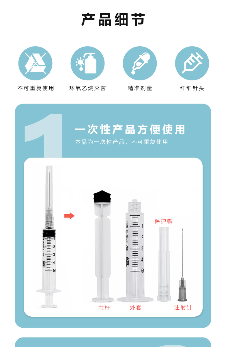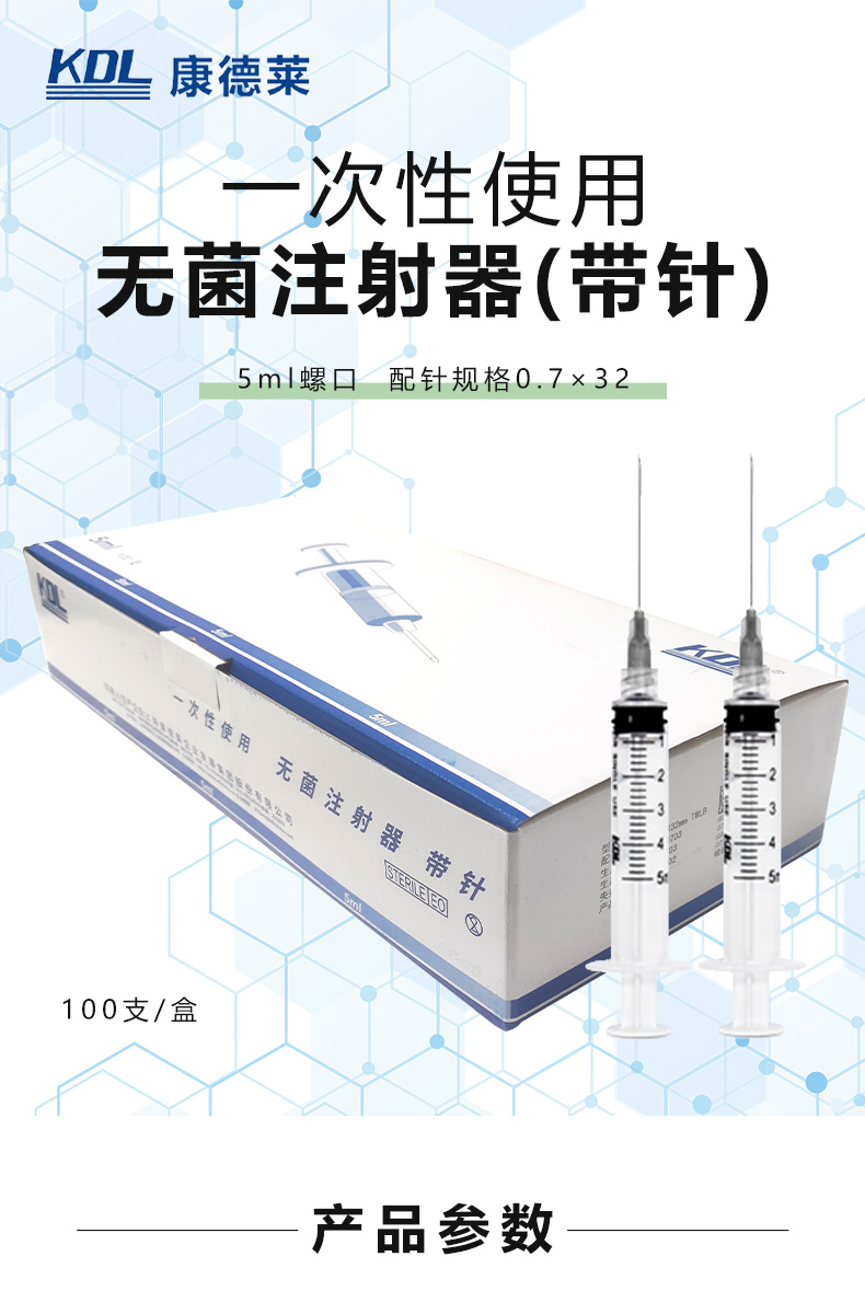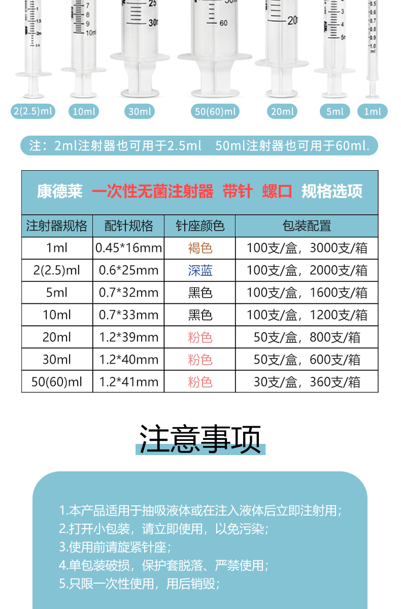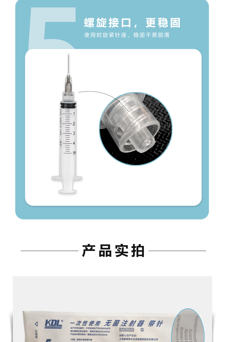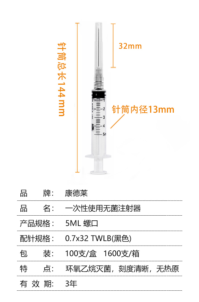 康德莱 一次性使用螺口注射器 5ml 产品特点:
