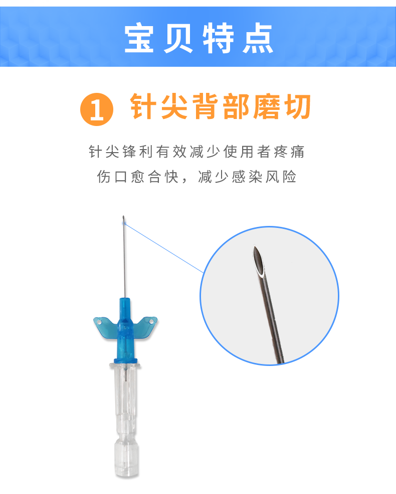 • 德国贝朗静脉留置针针头材料选用德国钢材,针头打磨为7刀打磨。(普通针为4刀)