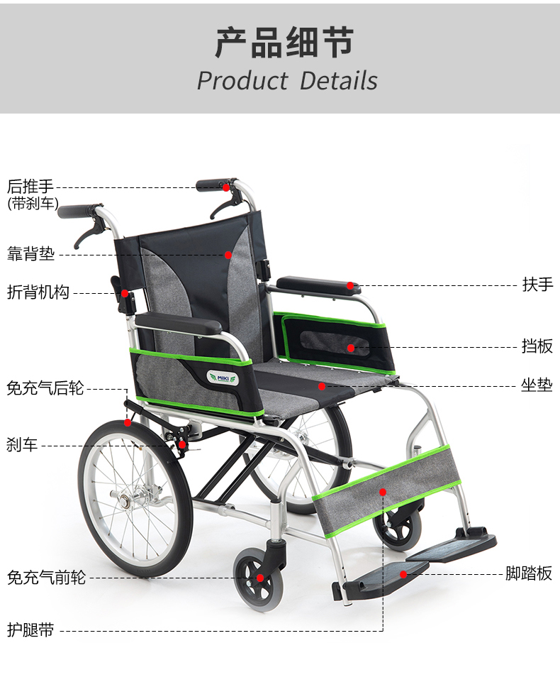 MIKI三贵 手动轮椅车MC-43RK 产品特点: