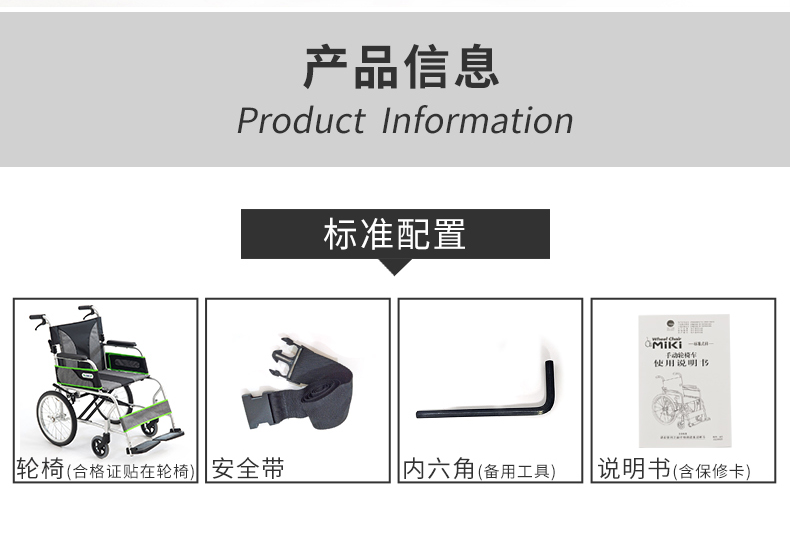 MIKI三贵 手动轮椅车MC-43RK 保修服务: