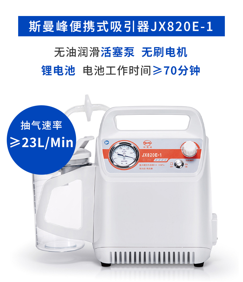 上海斯曼峰 便携式吸引器 JX820E-1(锂电池)产品特点:
