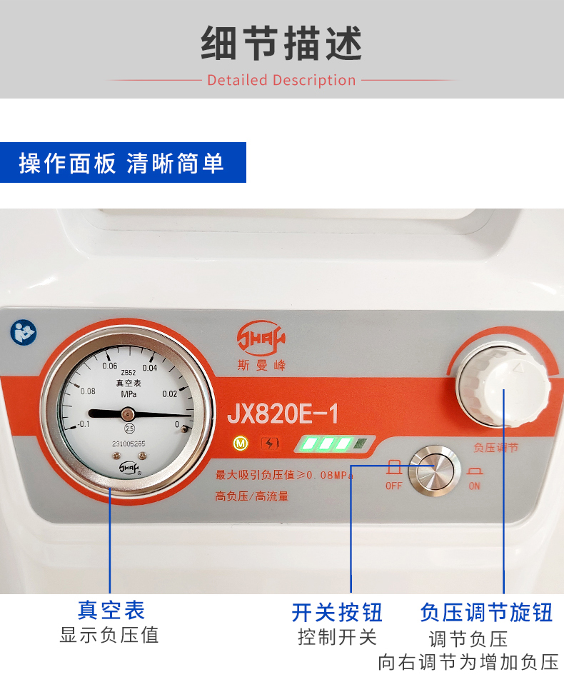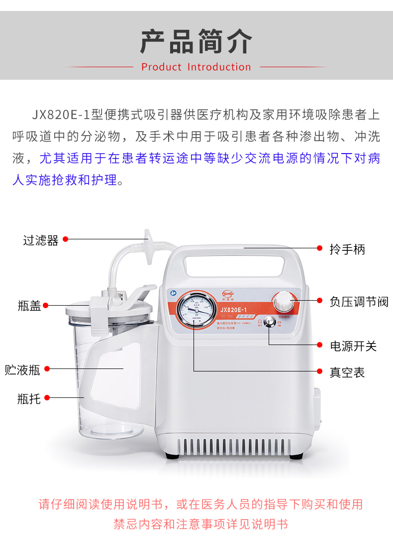上海斯曼峰 便携式吸引器 JX820E-1(锂电池) 产品简介: