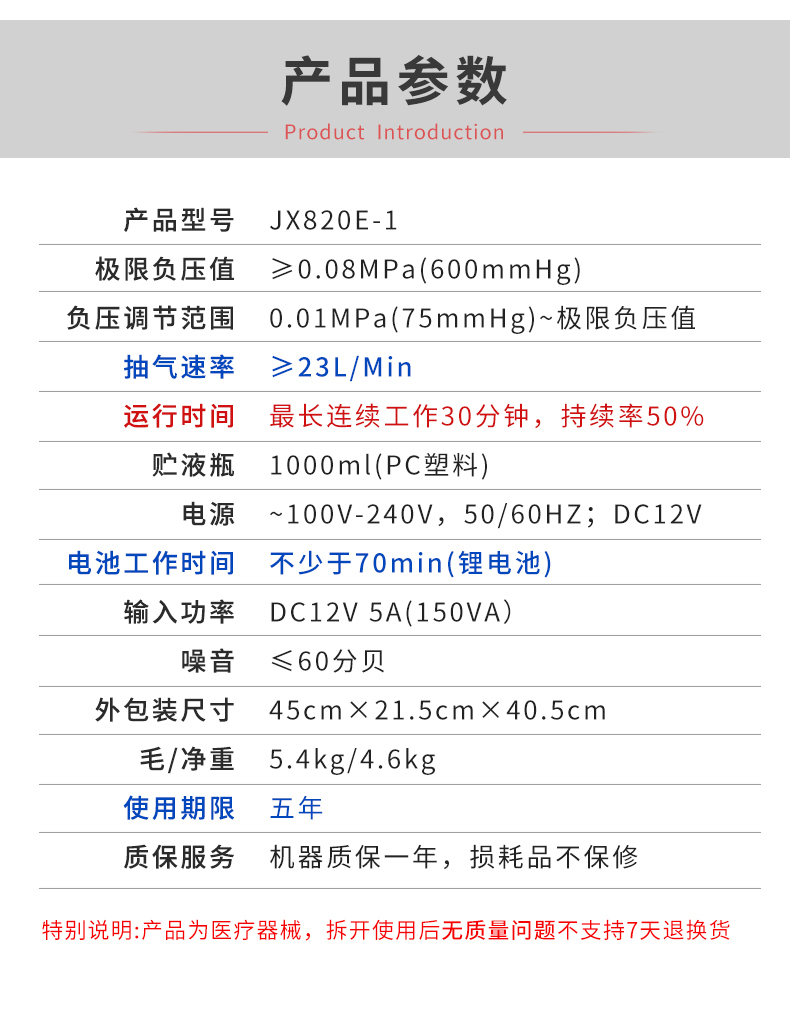 JX820D(铅酸电池)便携式吸引器(半个小时)
